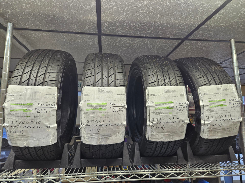 For inventory purposes, these 4 used 225/60R16 Multi-Mile Matrix Tour RS all-season tires are listed / priced individually ($40.00 each), but are being sold together as a set of 4 ($160.00 set of 4). We would “price match” these exact same tires brand new for $103.60 each ($414.40 set of 4) based on the lowest price we found online. But why would you buy new tires at $103.60 each when you can buy this entire set of 4 “like new” used tires for only $160.00?